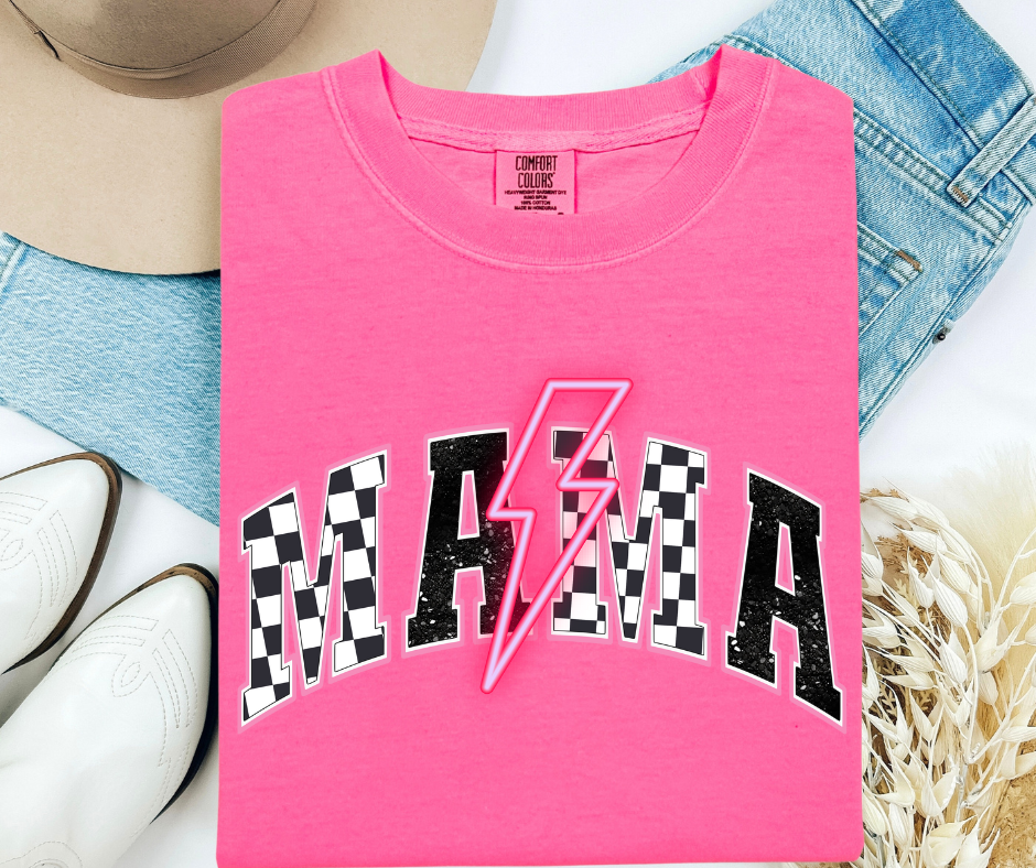 Make a bold statement with our Pink Neon Mama Tee, where comfort meets vibrant style. This eye-catching design is DTF printed in a striking pink neon on a super-soft Neon Pink short sleeve shirt—perfect for mamas who love to stand out.